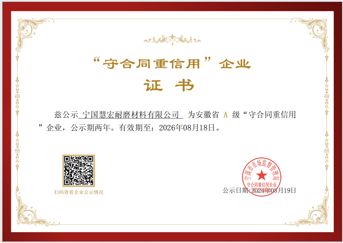 可靠的設備,才能長久穩(wěn)定運行全面推行ISO9001;2000版質量管理體系標準,秉承“科學管理、精心制造、優(yōu)質服務、追求卓越”的質量方針,不斷打造高端耐磨材料產品。